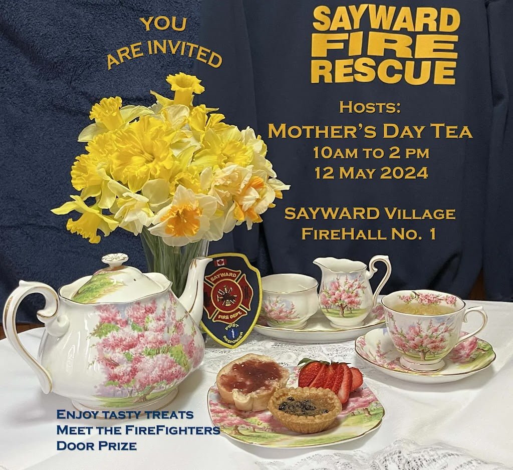 The Sayward Volunteer Fire Department will be hosting a Mothers Day Tea at the Sayward Village Fire Hall #1. Stop by on May 12th between 10am and 2pm.